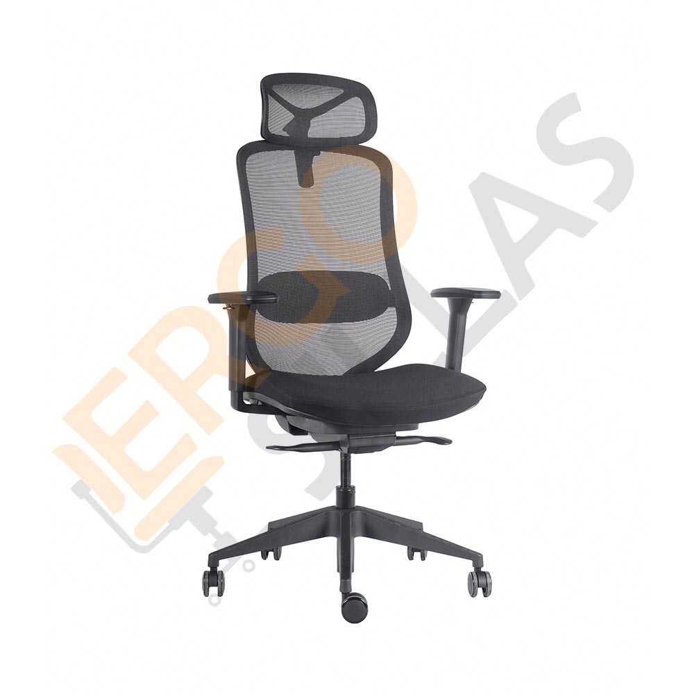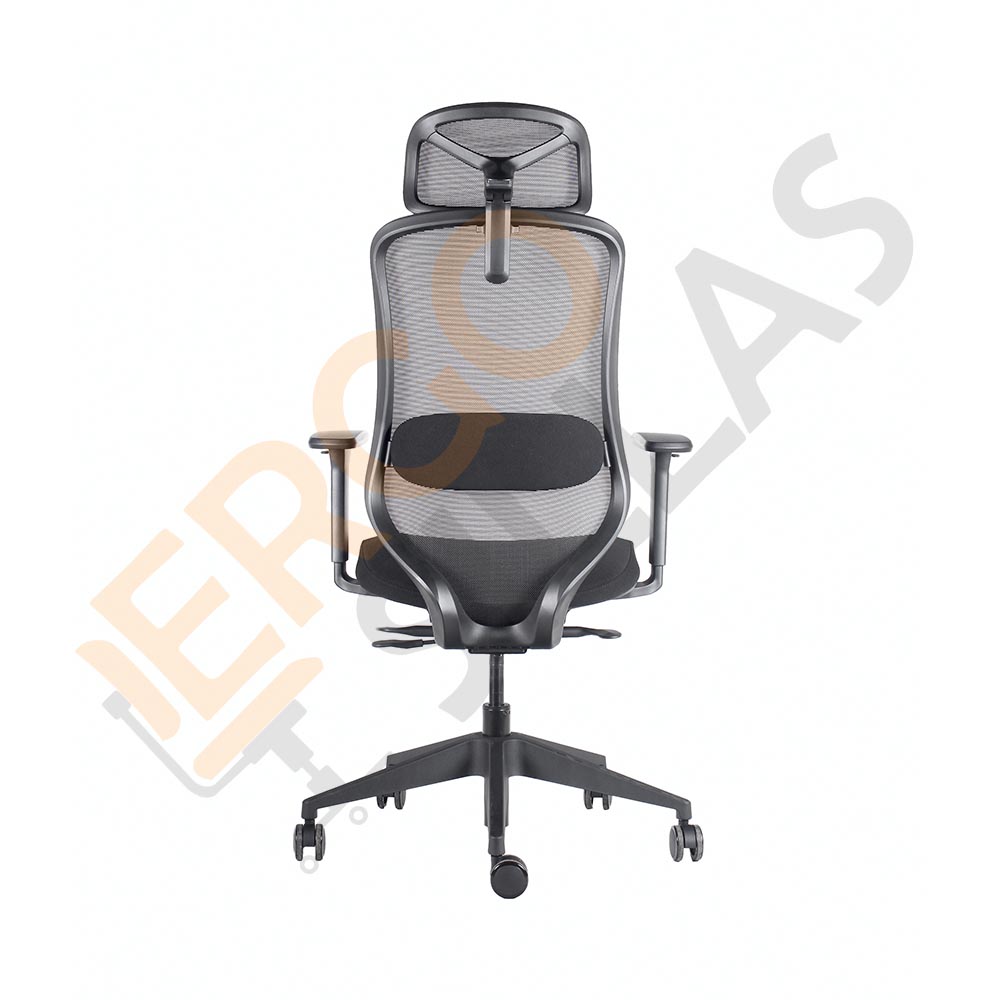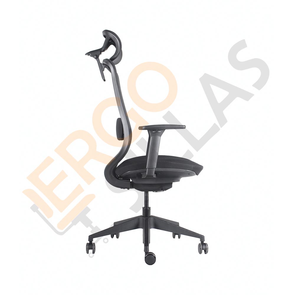 Silla Ejecutiva CADIZ cuenta con mecanismo sincrónico autopesante, bloqueo en 3 posiciones y desplazador de asiento. Respaldo en alto malla con soporte lumbar regulable en altura. Brazos regulables en altura, ángulo y profundidad (3D) con superficie para el antebrazo de PU. Asiento tapizado en tela color negro con espuma de alta densidad moldeada. Base estrella giratoria de Nylon reforzado con ruedas de 60mm. Apoyacabezas en malla con regulación de altura ángulo y profundidad.